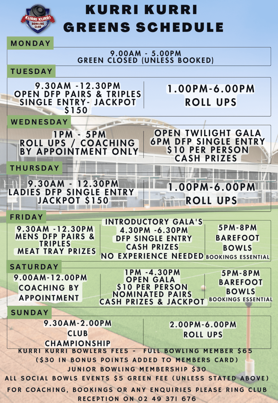 Contact our friendly staff on 49371676. Everything for your game is provided by the club. BBQ area is available. There is no cost.