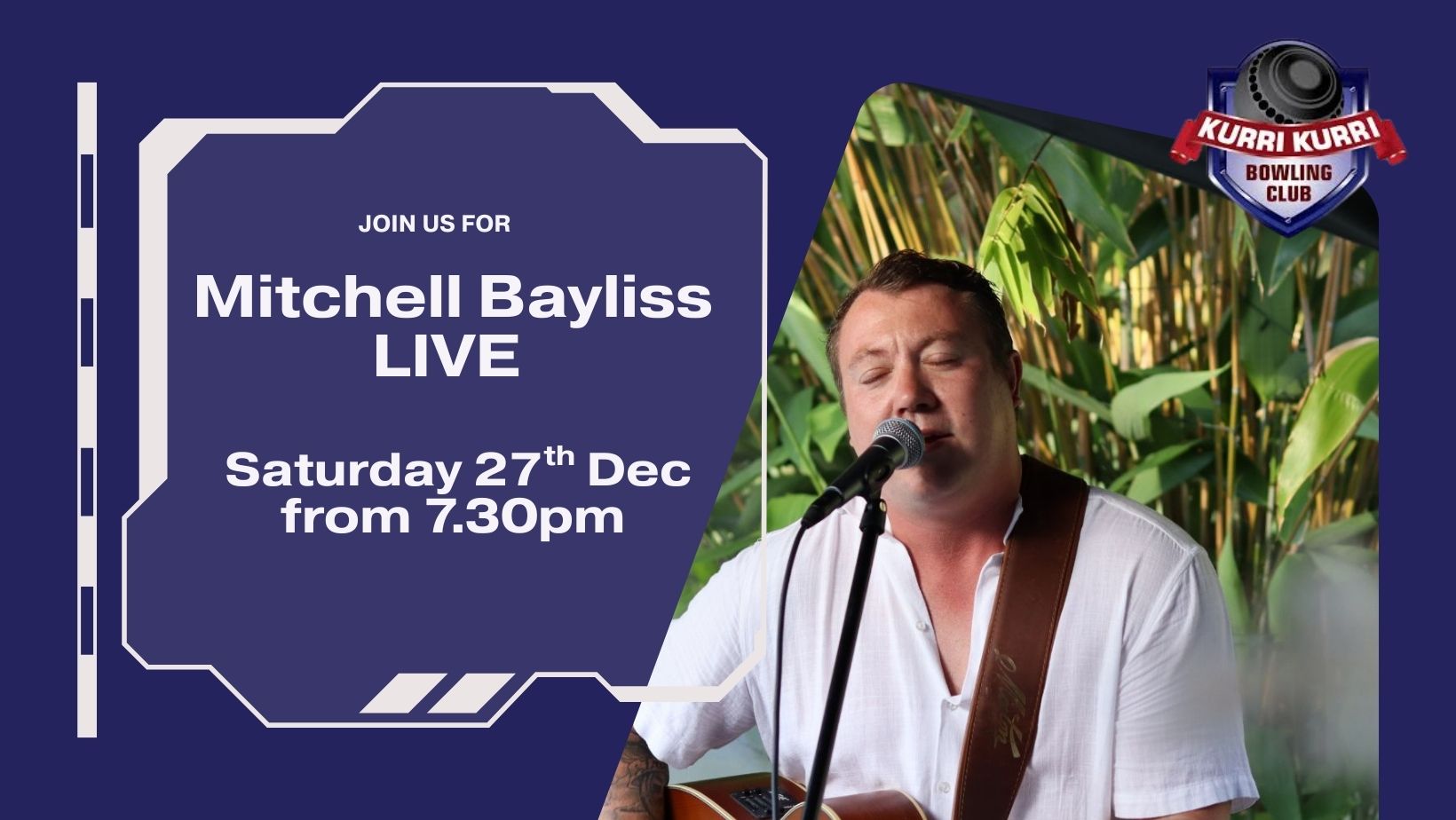 Mitchell Bayliss โ Live & Free ๐ Saturday 27 Decemberโฐ From 7.30pm๐ Kurri Kurri Bowling...